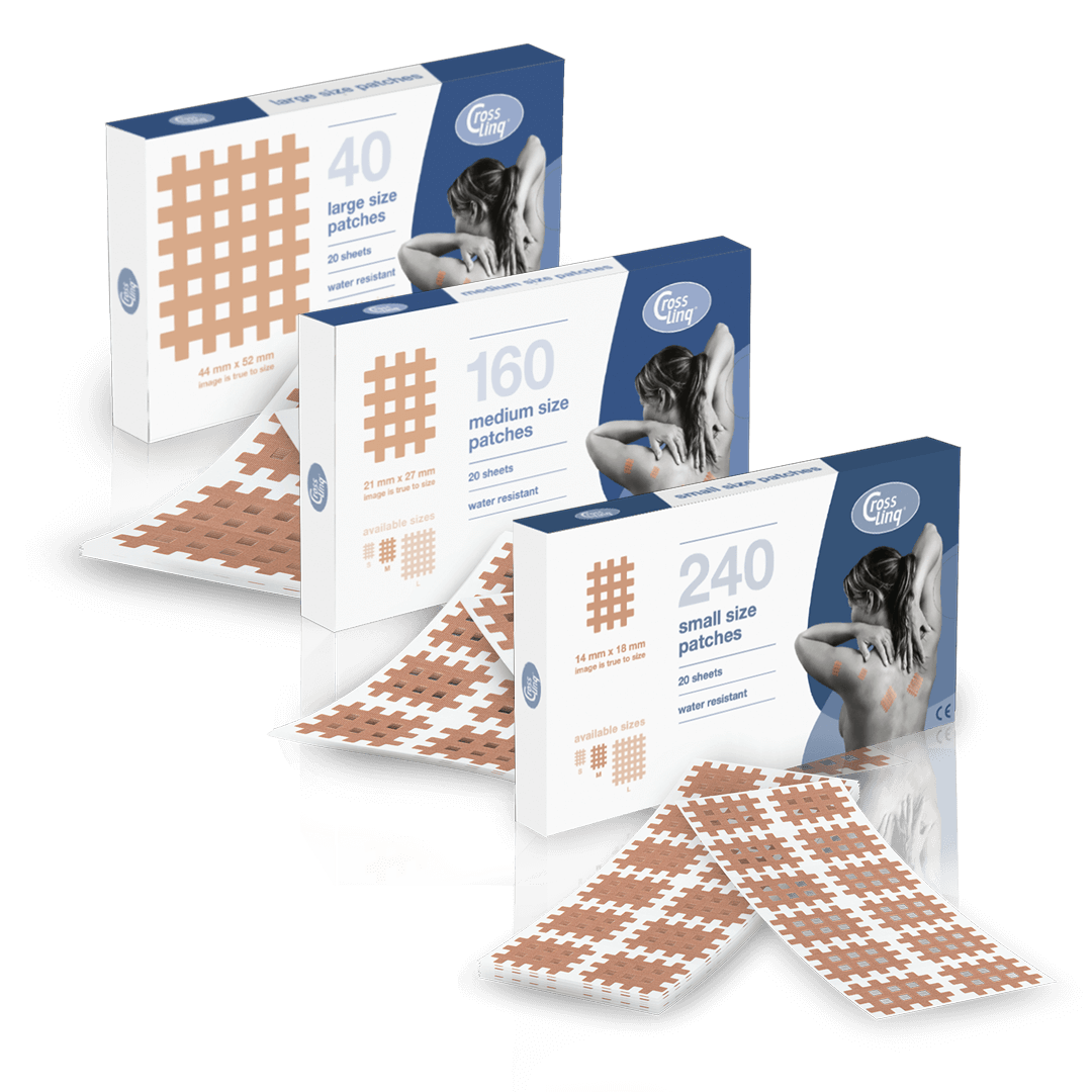 CrossLinq (ook bekend als CrossTape) zijn niet-elastische, rastervormige pleisters die in een gecertificeerde faciliteit in Zuid-Korea worden vervaardigd. Elke patch is gecoat met een huidvriendelijke acryl kleeflaag, waardoor ze comfortabel zijn om te dragen, zelfs op gevoelige plekken. Deze fijnmazige patches worden vaak gebruikt op lokale pijnpunten, triggerpoints en specifieke acupressuurpunten om spanningen te verlichten en het natuurlijke evenwichtsproces van het lichaam te ondersteunen.